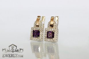 Женские серебряные серьги (серебро 925 пробы) с золотыми вставками 375 пробы и фианитами (цвет шампань).