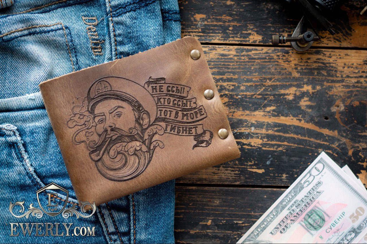 Чоловічий шкіряний портмоне коричневий з малюнком 11087WK