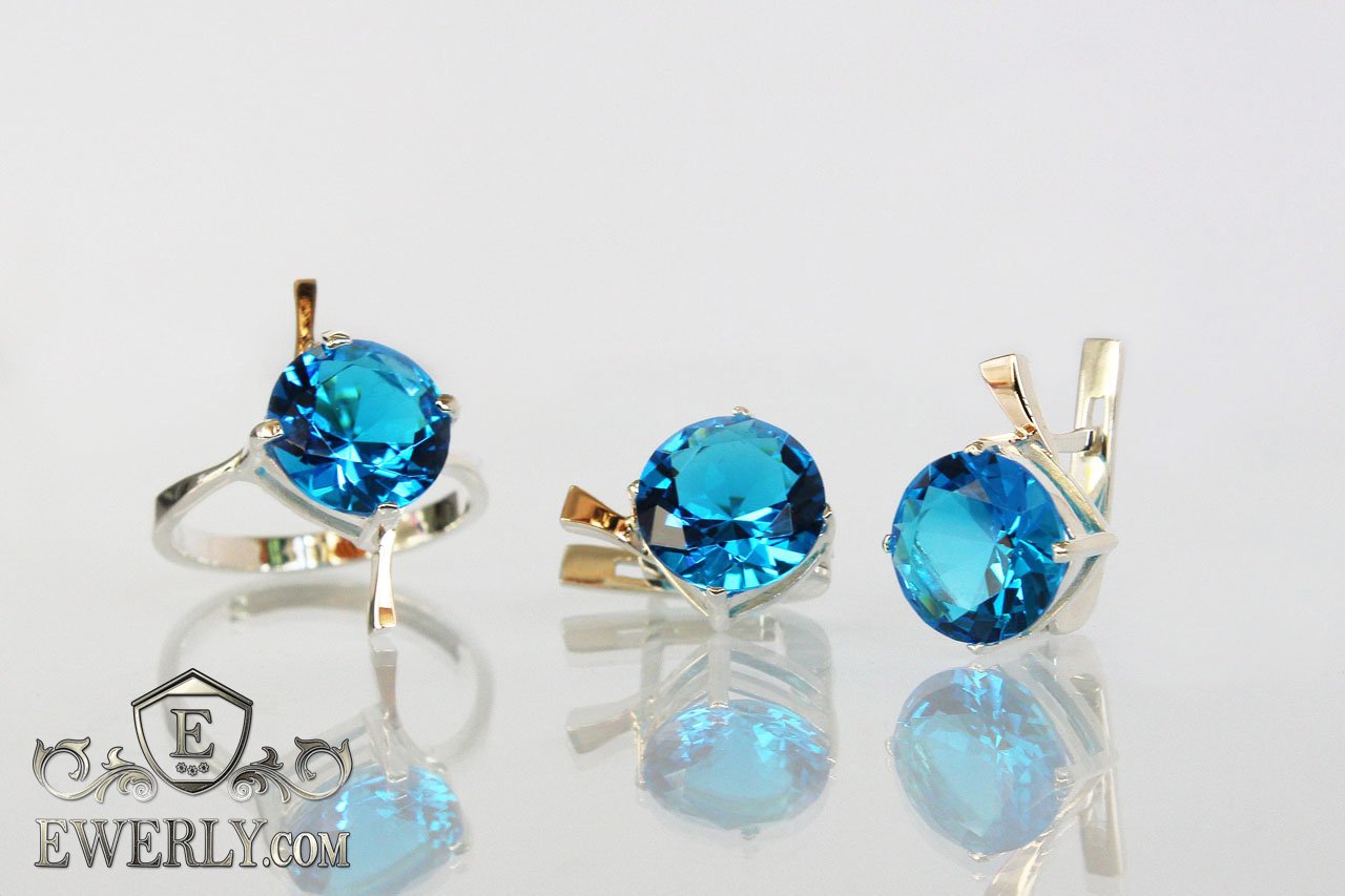 Жіночий набір: срібний перстень і сережки з блакитним камінням