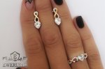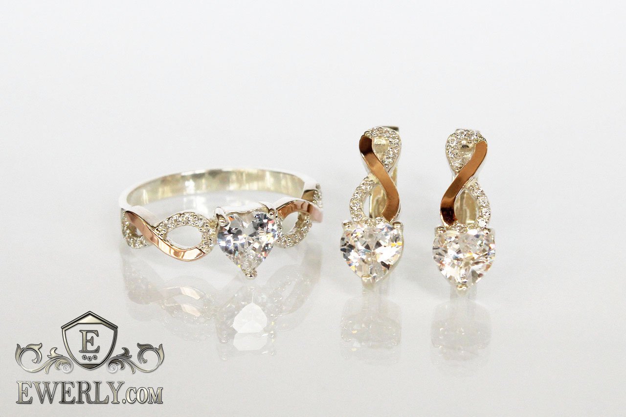 Набір з срібних сережок і кільця з серцем (камінь білого кольору)